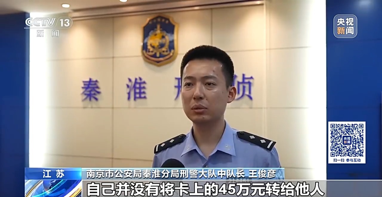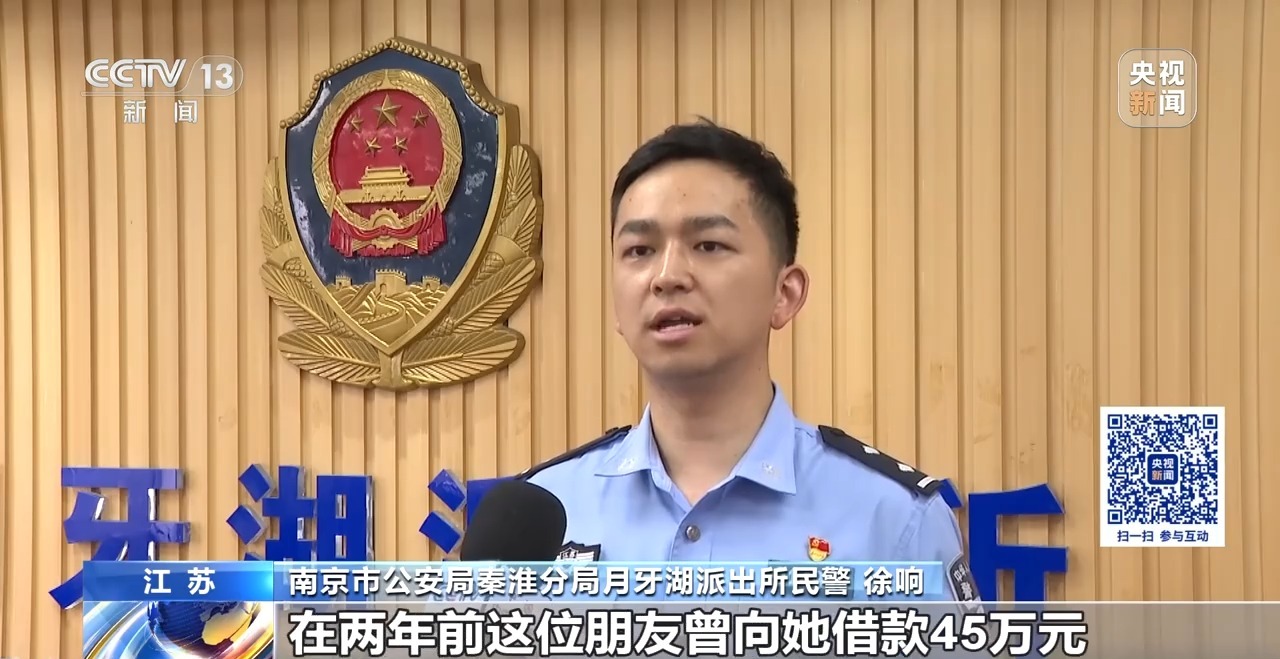 南京市公安局秦淮分局月牙湖派出所民警 徐响:经核查,向郭某转账45万元的人姓何,但此人的电话一直无人接听。我们反复对郭某心理疏导后,她说转账人是她一位朋友,在两年前,这位朋友曾向她借款45万元,此次转账正是对方还的欠款。