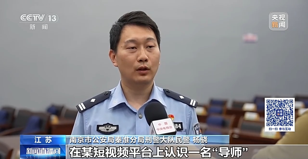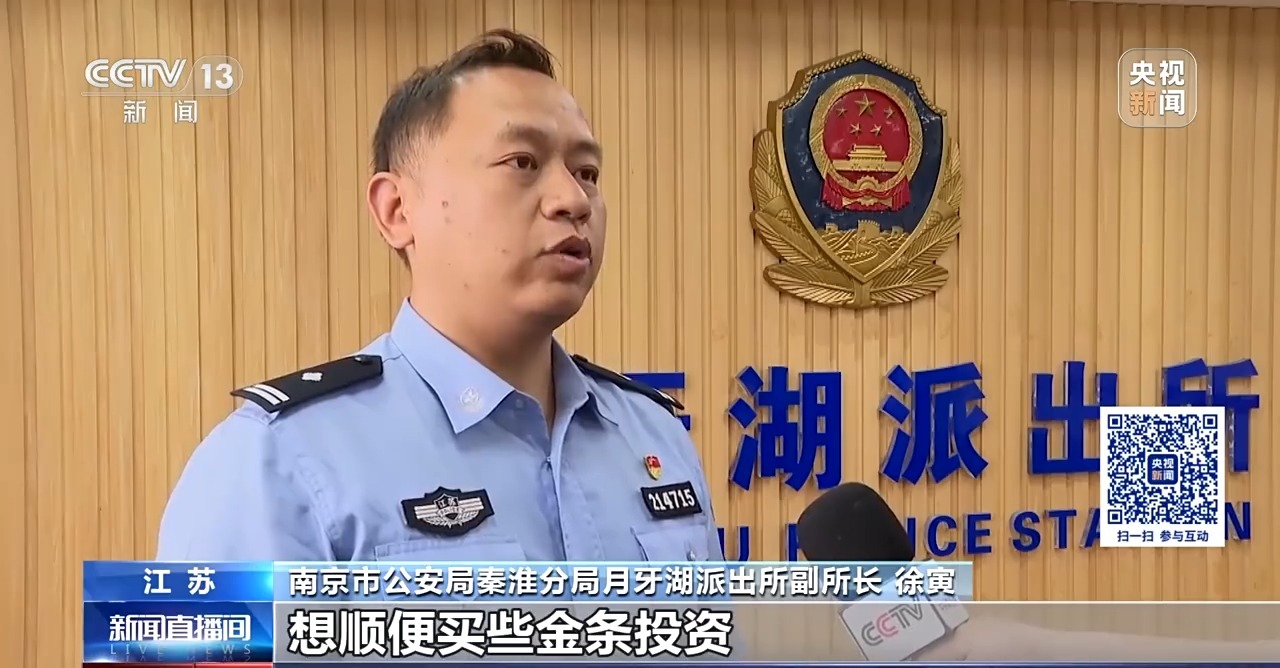 南京市公安局秦淮分局刑警大队民警 杨骁:经过突审,郭某供述自己今年1月初,在某短视频平台上认识一名“导师”,“导师”告诉她,只要跟着其上课,并按照“导师”的指令,到外地购买相应数量的黄金后交给“导师”,就能获得279万元的“精准扶贫款”。